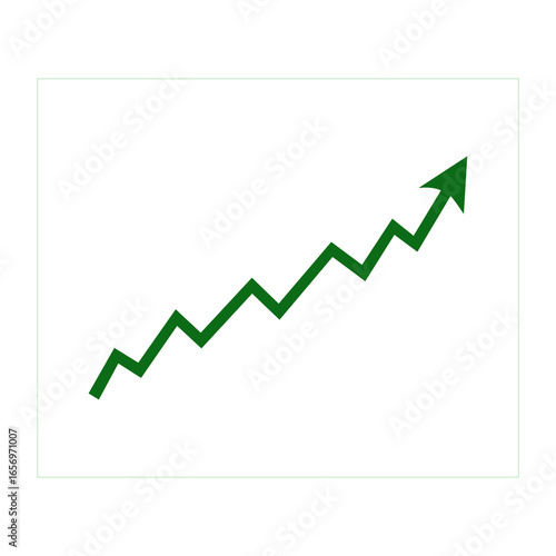 A green zigzag arrow points upwards, indicating a positive trend, progress, and financial growth. This graphic represents success and improvement.