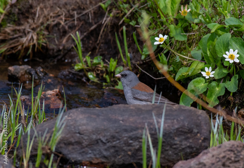 A Grey-headed Dark-eyed Junco in a Pool of Water