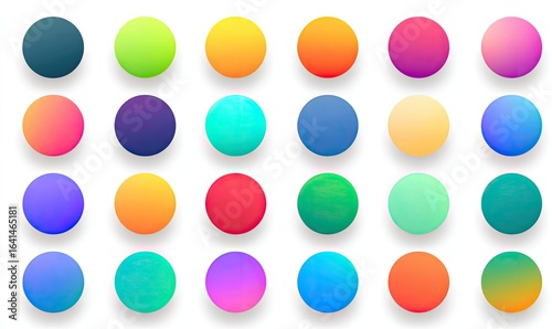 A grid of 20 circular buttons with vibrant, gradient fills. Each button has a subtle shadow