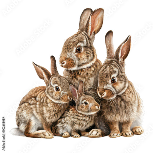 A group of adorable rabbits sitting together, showcasing their soft fur and playful nature in a charming and delightful scene.