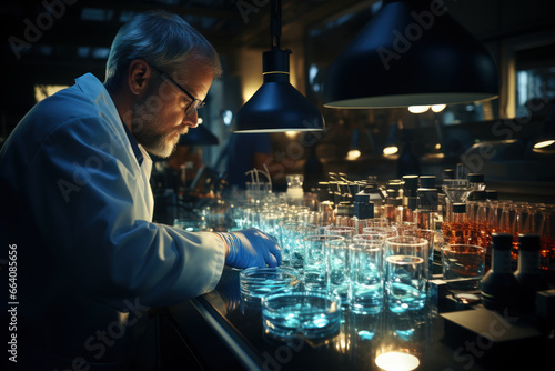 A group of biotechnicians analyzing DNA sequences in a high-tech laboratory, advancing genetic research. Concept of genomics and precision medicine. Generative Ai.