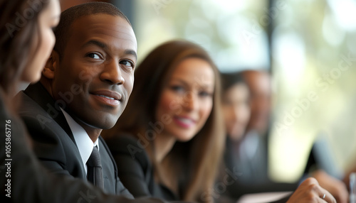 A group of business professionals collaborate on project analysis in a big modern office setting during the afternoon.