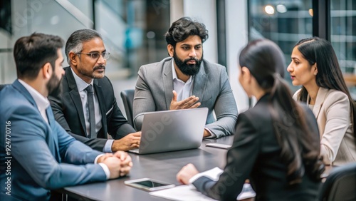A group of Indian customer service representatives in a meeting room, discussing strategies.