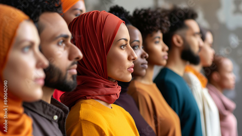 A group of people with different skin tones styles are standing in a line. people come from different backgrounds, cultures. a diverse group of individuals highlighting multicultural unity