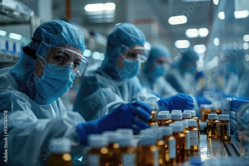 A group of people working together on an assembly line in a factory, doing their jobs and following production procedures