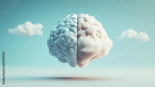 A half-brain featuring a cloud inside. Represents creativity and an open mind. This is a 3D rendered illustration.