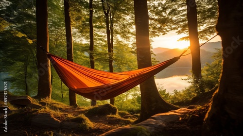 A hammock in a setting that is conducive to camping