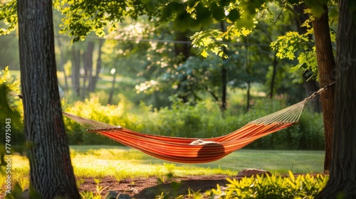 A hammock strung between two trees inviting relaxati AI generated illustration