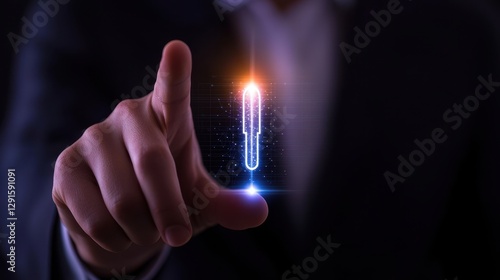 A hand interacts with a glowing holographic interface symbolizing innovation.
