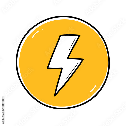 A hand-drawn lightning bolt icon in a yellow circle, concept for app design, website interface, and energy branding