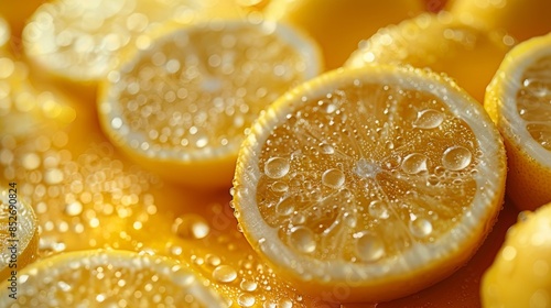 a handful of lemons and drops of lemon juice on a yellow coloured background Setting