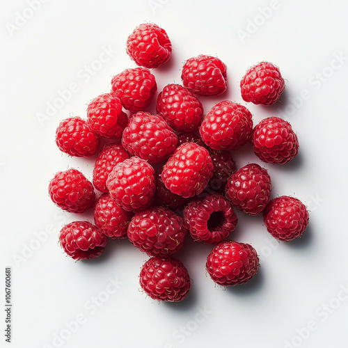 A handful of plump raspberries, isolated on a white background, highlighting a vibrant red berry