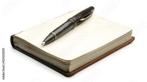 A handmade leather notebook, clean white background, transparent isolate