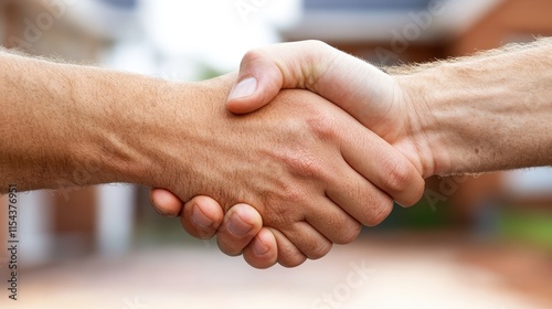 A handshake between two casually dressed individuals, emphasizing friendliness and cooperation. The setting suggests a harmonious and mutual understanding.