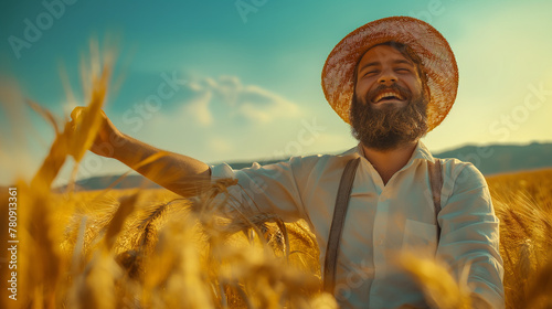 A happy farmer outside in a field, in the style vibrant style