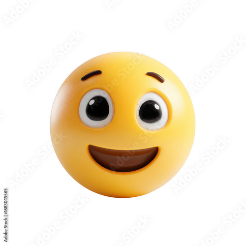 A happy yellow emoticon with big eyes and a wide smile on a black background