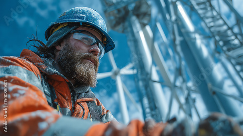A hardworking technician operates equipment at a wind farm, showcasing dedication and expertise in renewable energy.