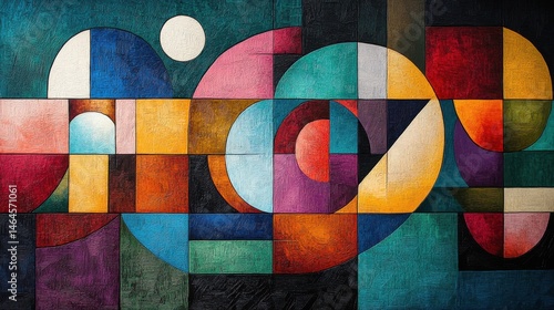 A harmonious Cubist artistic composition with bold, angular patterns and radiant, vibrant hues