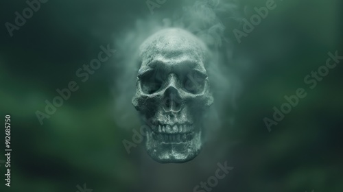 A haunting apparition with a skeletal face, emerging from the darkness on the forest path