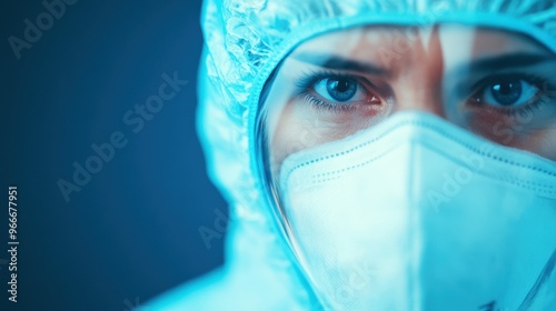 A healthcare worker wearing a protective hazmat suit and mask, emphasizing safety and dedication in a laboratory environment