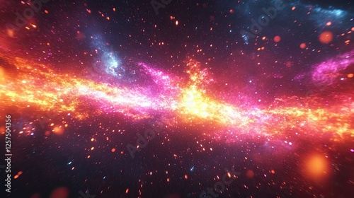 A high-energy firework display background with explosions of vivid colors against a dark sky.