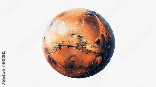 A highly detailed and realistic 3D rende of , the red planet, isolated on a transparent background perfect for space exploration graphic design projects and presentations.
