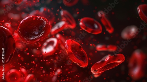 A highly detailed and realistic 3D-rendered microscopic image showcasing red blood cells