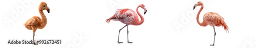 A highly detailed and ultra-sharp 3D model of a baby flamingo, placed on the left side, isolated on a white background