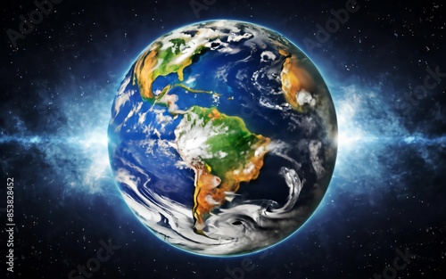 A highly detailed, photorealistic 3D render of a planet Earth globe,
