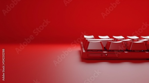 A high-quality 4K shot of a mechanical keyboard placed on a solid red background, ultra-detailed lighting and reflections.