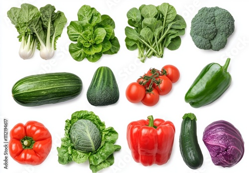 A high-resolution image of different fruits and vegetables, set against a white background, highlighting healthy eating with plenty of space for text.