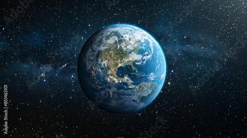 A high-resolution image of Earth as a globe, featuring realistic terrain and ocean textures, set against a background of stars to convey the planet's place in the universe.