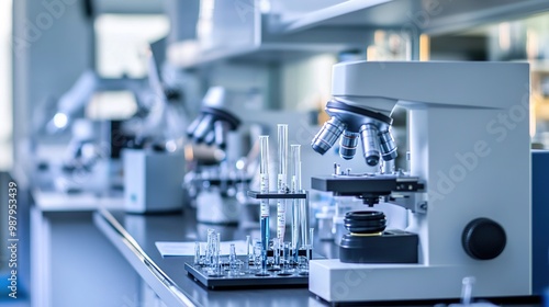 A high-resolution image of modern laboratory testing equipment, including microscopes, centrifuges, and diagnostic machines.