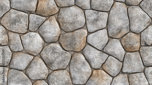 A high-resolution seamless gray cobblestone wall or road texture, designed with grungy stone patterns and natural variations.