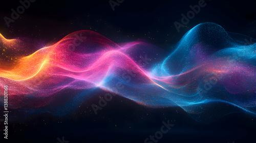A high-resolution wallpaper of vibrant neon waves in a mix of blue, pink, and purple, creating a dynamic and fluid digital landscape