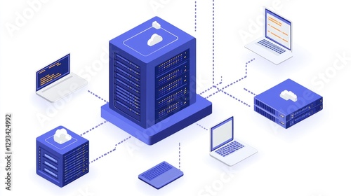 A high-speed data transfer visual connecting cloud storage systems.