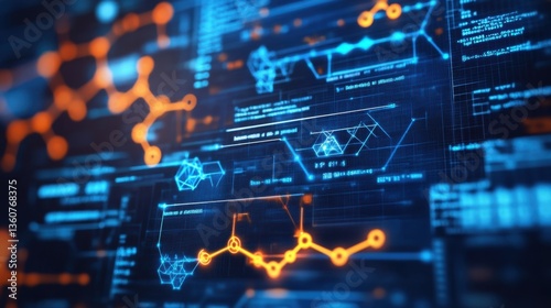 A high-tech molecular display featuring chemical bonds and atomic elements in a digital overlay.