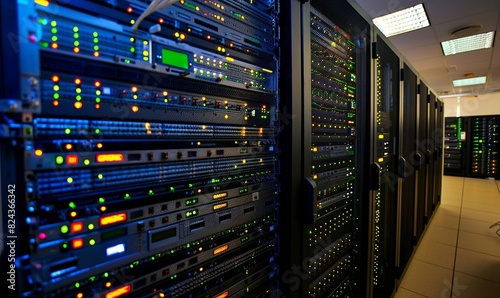 A high-tech server room, showcasing the hardware that supports software applications and services