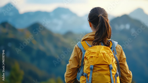 A hiker enjoys breathtaking mountain views, showcasing adventure and nature's beauty with a focus on exploration and tranquility.