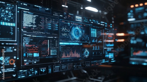 A holographic interface displaying 3D data and allowing virtual controls to be used