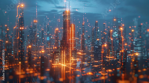 A holographic projection of a digital city, showcasing next-generation technology and urban digital transformation, with space for text.