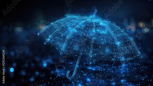 A holographic umbrella of interconnected security grids protecting Earth, symbolizing the power of AI-driven cybersecurity.