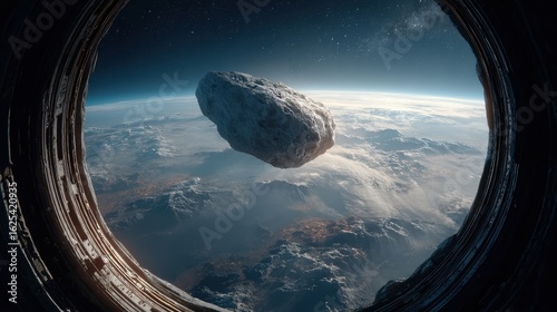 A huge asteroid seen from airplane window