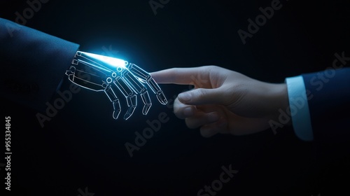 A human hand reaching out to touch a robotic hand, symbolizing the connection between technology and humanity.