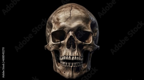A human skull on a black background. Generative ai