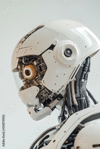 A humanoid AI android with a transparent visor revealing its advanced digital core.