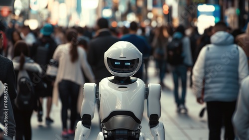 A humanoid robot amidst a crowd, symbolizing the future of AI