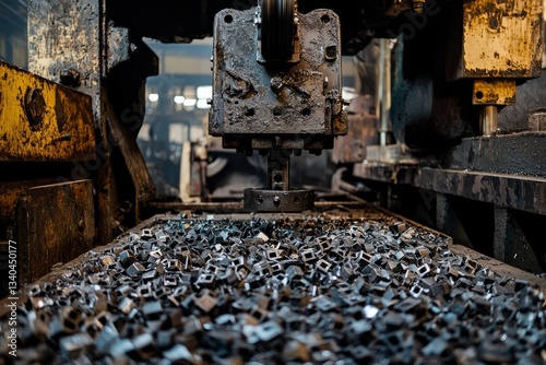 A hydraulic press crushes scrap metal into neat cubes. The machine rumbles with each cycle