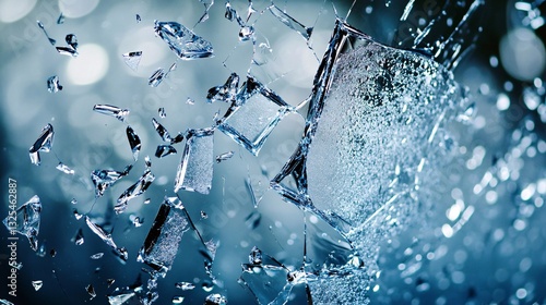 A hyper-detailed close-up of airborne shattered glass, highlighting its jagged, fractured edge