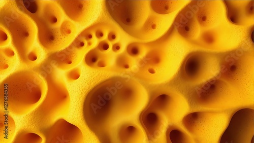 A hyperrealistic 3D abstract wallpaper showcasing an organic yellow porous surface with smooth, flowing curves and intricate texture.